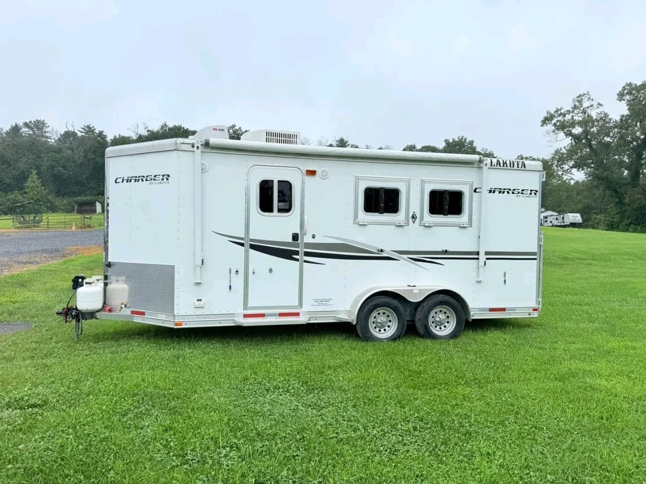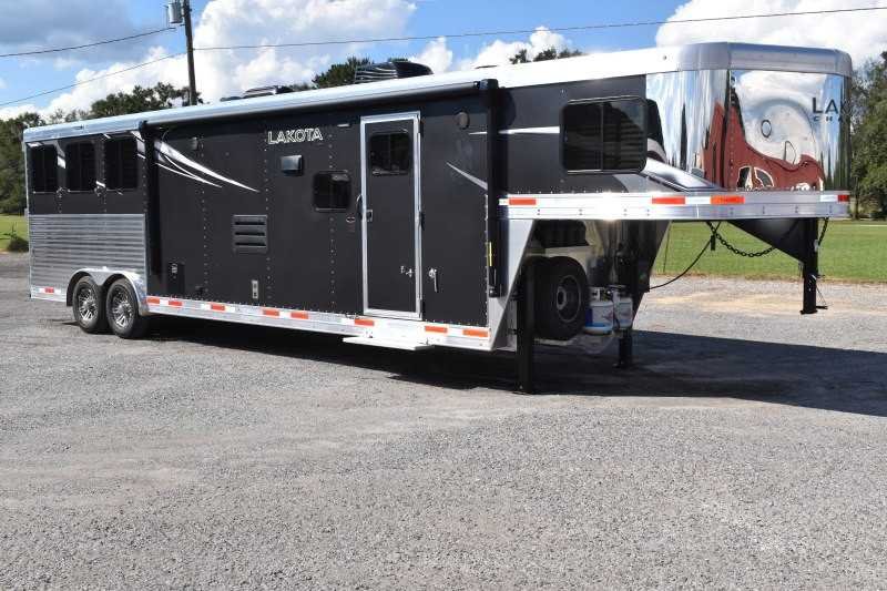 USED 2022 Lakota Charger 8313SRGLQ 3 Horse Trailer with 13′ Short Wall