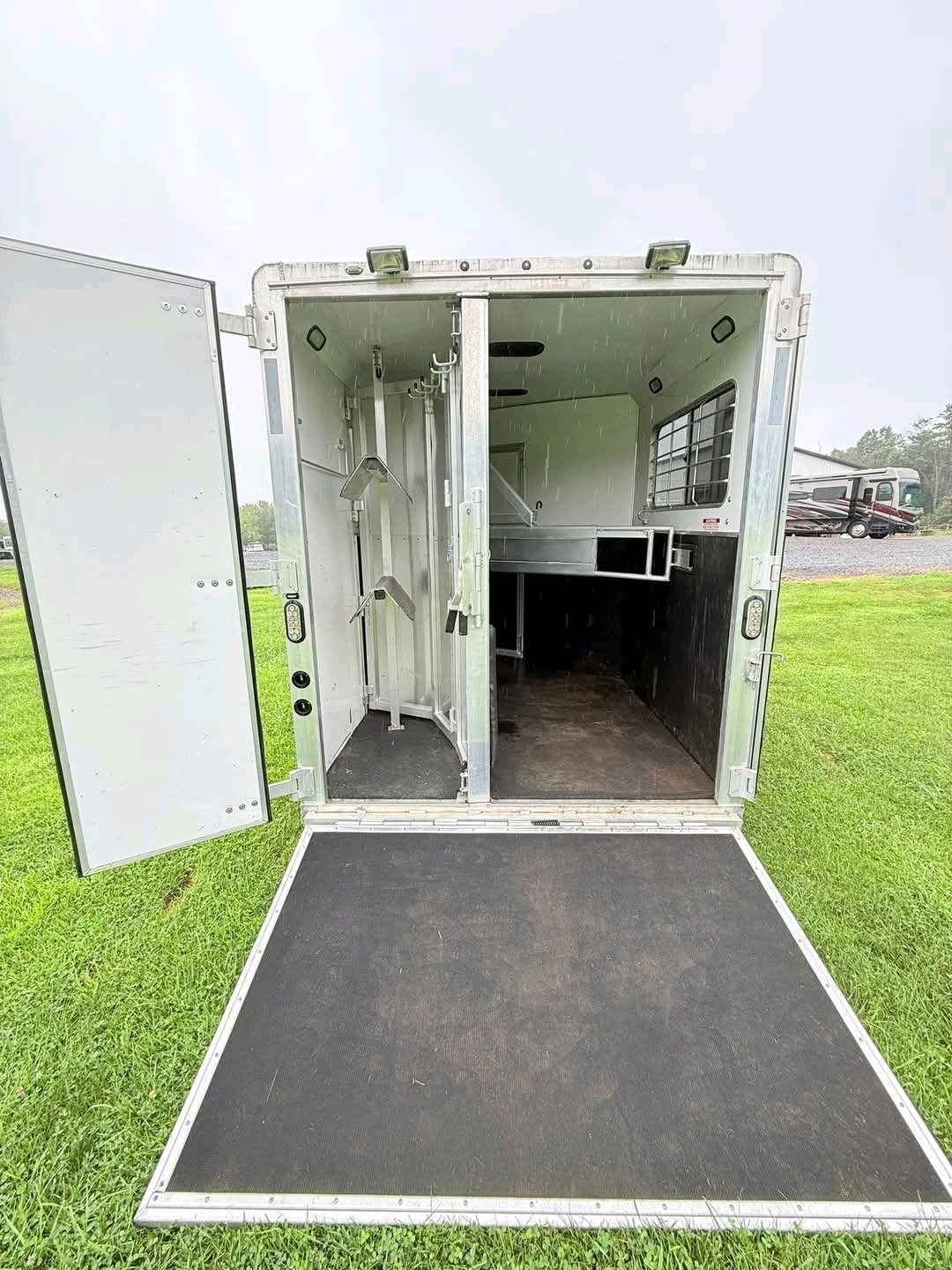 This used 2013 Lakota Charger is a clean, all aluminum 2 horse bumper pull trailer featuring a compact living quarters perfect for short trips or weekend getaways. Well maintained and ready to use, it offers comfort in a lightweight design.