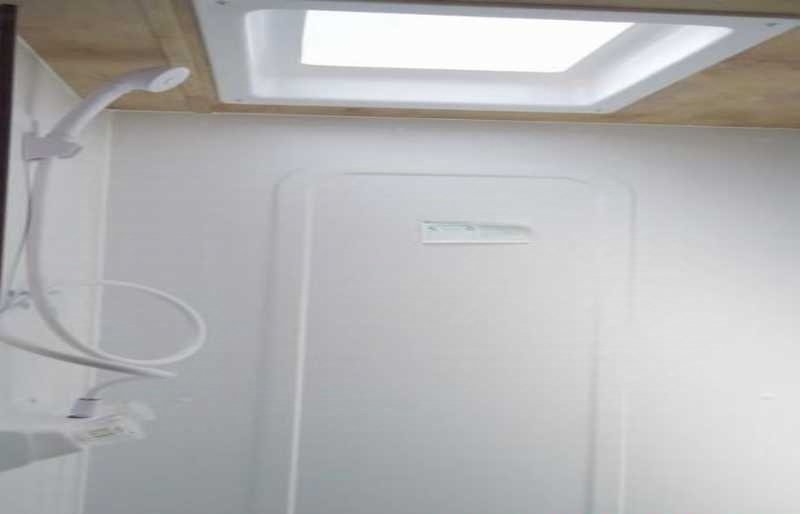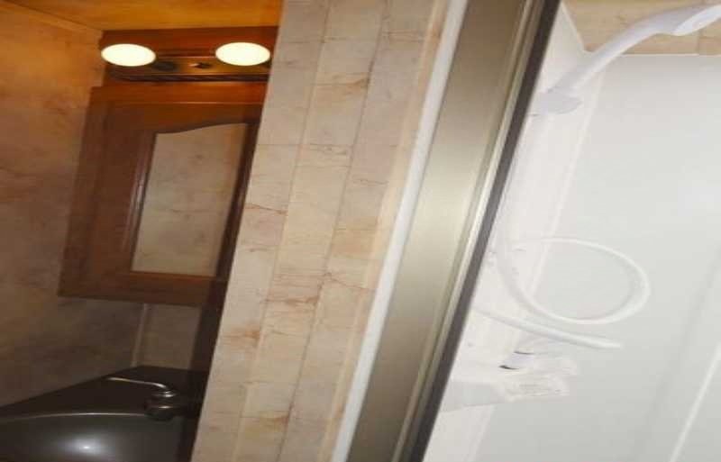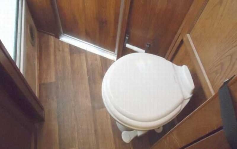 Bathroom: Toilet, shower, fresh/gray/black water tanks, water heater