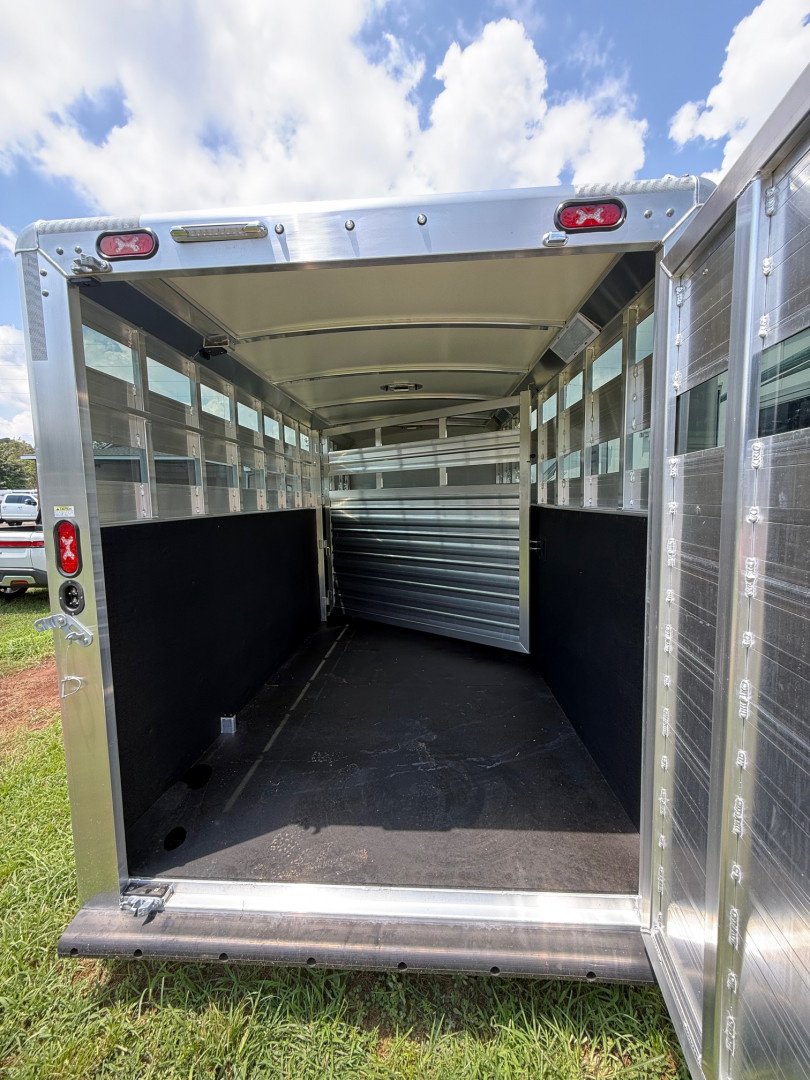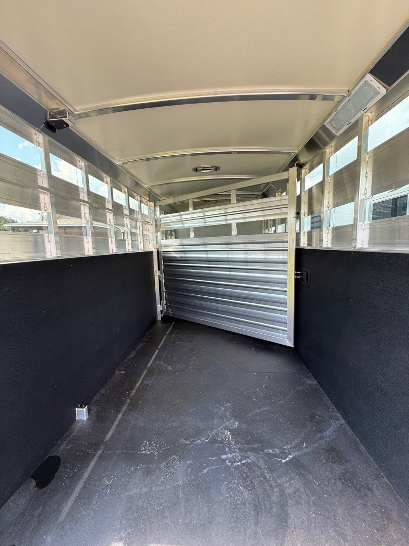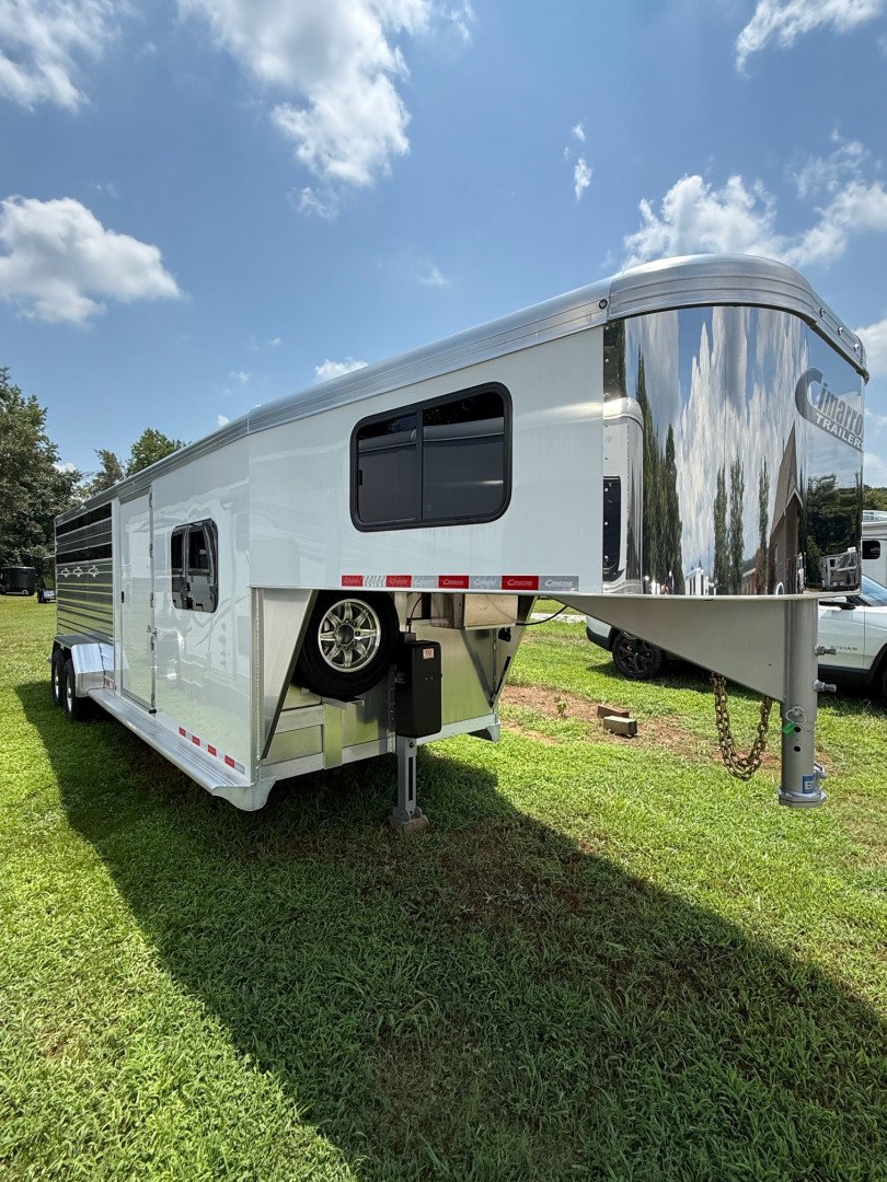 This 2024 Cimarron Lonestar Stock Combo is a top notch aluminum gooseneck trailer with a Comfort Package, designed to haul your stock safely while keeping you comfortable on the road. With a 24’ length, 6’10” width and 7’1” height, it offers plenty of space for your animals and gear.